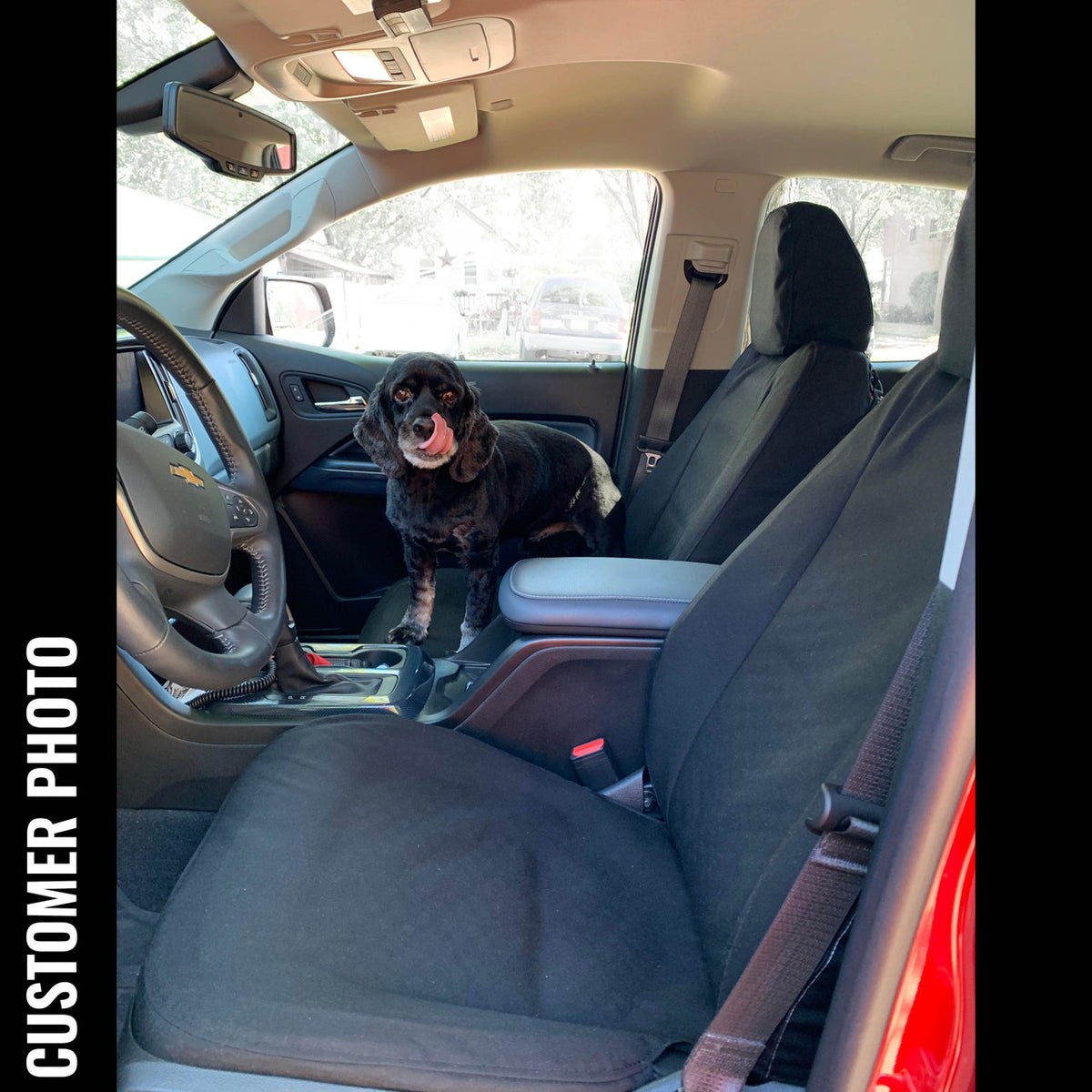 This cover is for the whole front row, both seats and the center console seat.